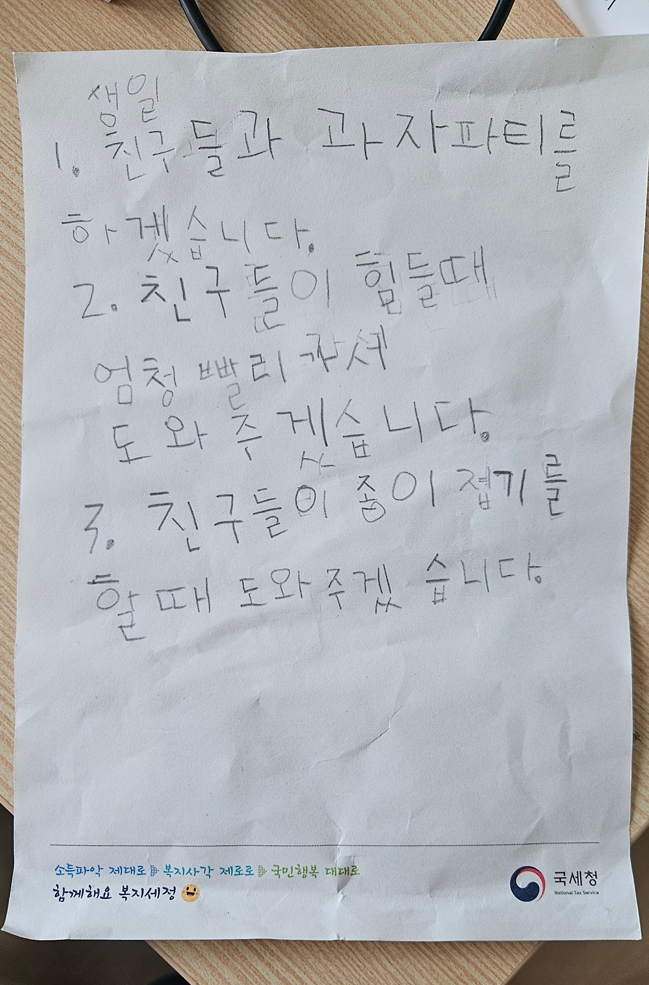 그리고, 뭐라고 말할지 같이 써보자고 해서 자려고 누웠다가 일어나서 공약을 써 내려갔다.