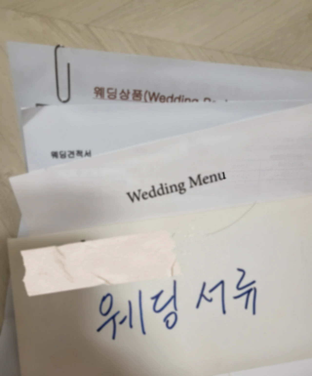 직접 상담받으며 받아왔던 웨딩홀 견적 관련 웨딩 서류들