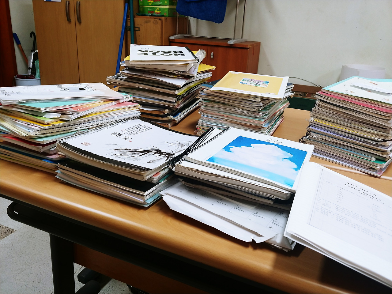 매 단원 끝날 때마다 걷는 배움 노트로 인해 교무실에 가득 찬 노트들