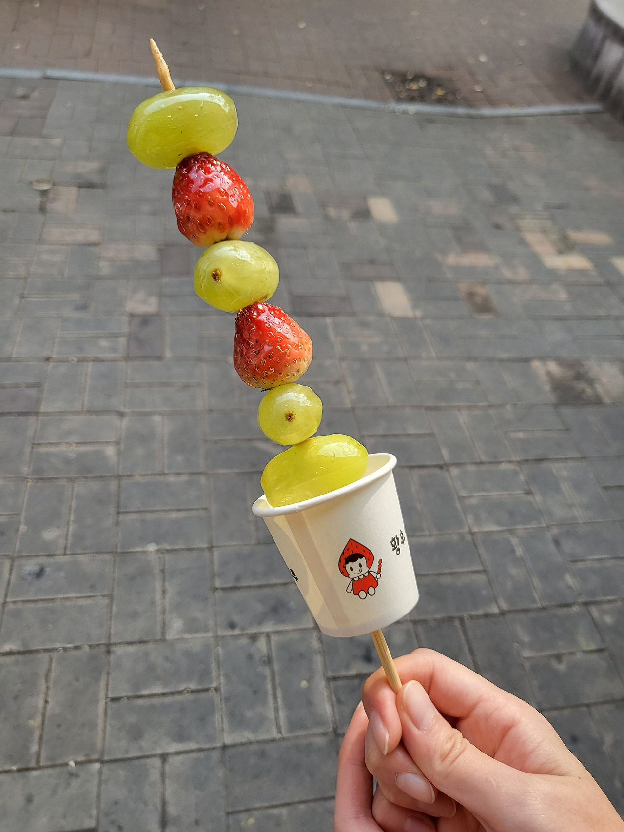 중국 교환학생을 갔을 때, 중국 여행을 갔을 때, 심지어 대학교 축제 때 중국학과 포차에서 팔던 그 탕후루였다. 내 인생에 수도 없이 많이 스쳐 지나갔던 탕후루. 그동안 '과일은 과일 그 자체로 먹는 게 제일이다'는 내 신념에 설탕 옷을 입은 탕후루는 단 한 번도 눈길조차 주지 않았었다.