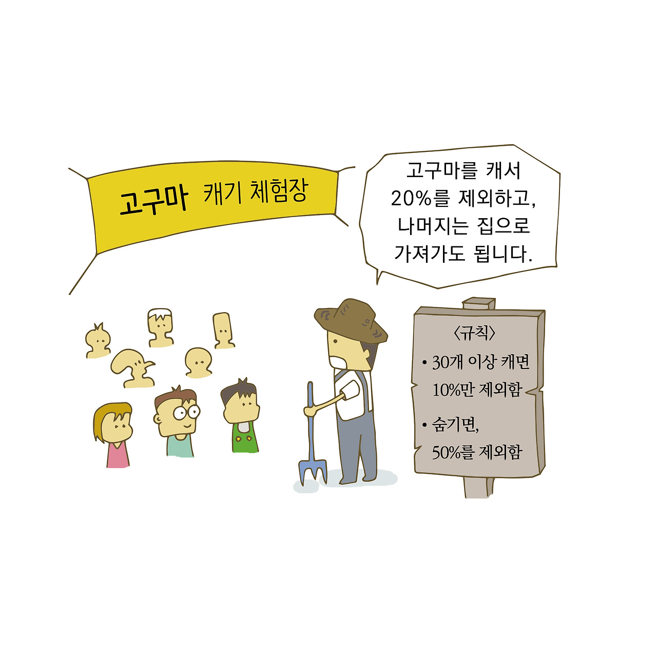 "밍"이는 고구마 수확 규칙(세법)에서 정해진 혜택을 잘 이용하여 절세를 한 것이고, "찐"이는 자신이 수확한 고구마를 숨기는 행위(탈세)가 적발되어 더 많은 고구마를 내놓아야 하는 벌칙(세법에서는 가산세라고 한다)을 받게 된 것이다.