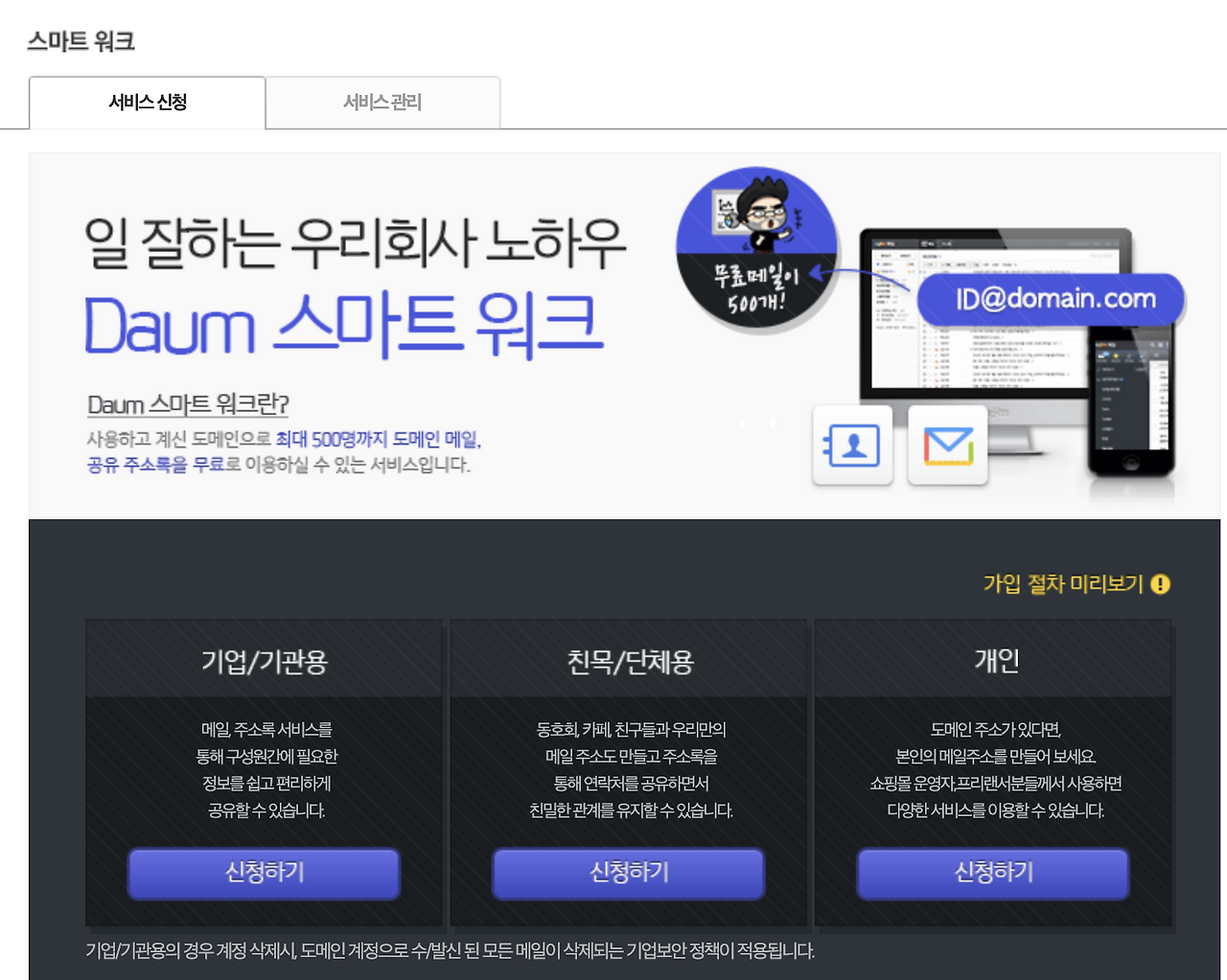 그리고 내 선택은 '다음 스마트워크'. 혼자 일해서 많은 기능이 필요 없고, 메일만 주고받을 수 있으면 되기 때문!