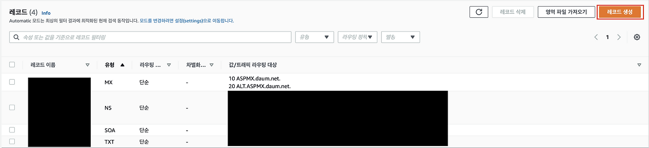 곧장 거기서 바로 레코드 생성하기를 클릭. 그럼 아래 페이지가 나온다.