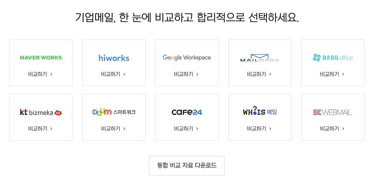 회사 이메일을 만드는 방법은 생각보다 정말 많다. 카페24나 Wix같은 웹사이트 빌더를 통해 웹사이트를 제작해서 이미 가지고 있다면, 해당 호스팅 사이트와 연계된 이메일들을 사용할 수도 있다. 나는 막연히 gmail을 생각하고 알아보고 있었다. 거의 결제 직전까지 갔었는데, 이때 또 고개를 든 나의 속마음. '아.. 뭔가 무료 서비스 있을 것 같은데..' 그래서 한 번 구글에 검색을 해봤다. 검색할 때 사용한 키워드는 '회사 이메일'.