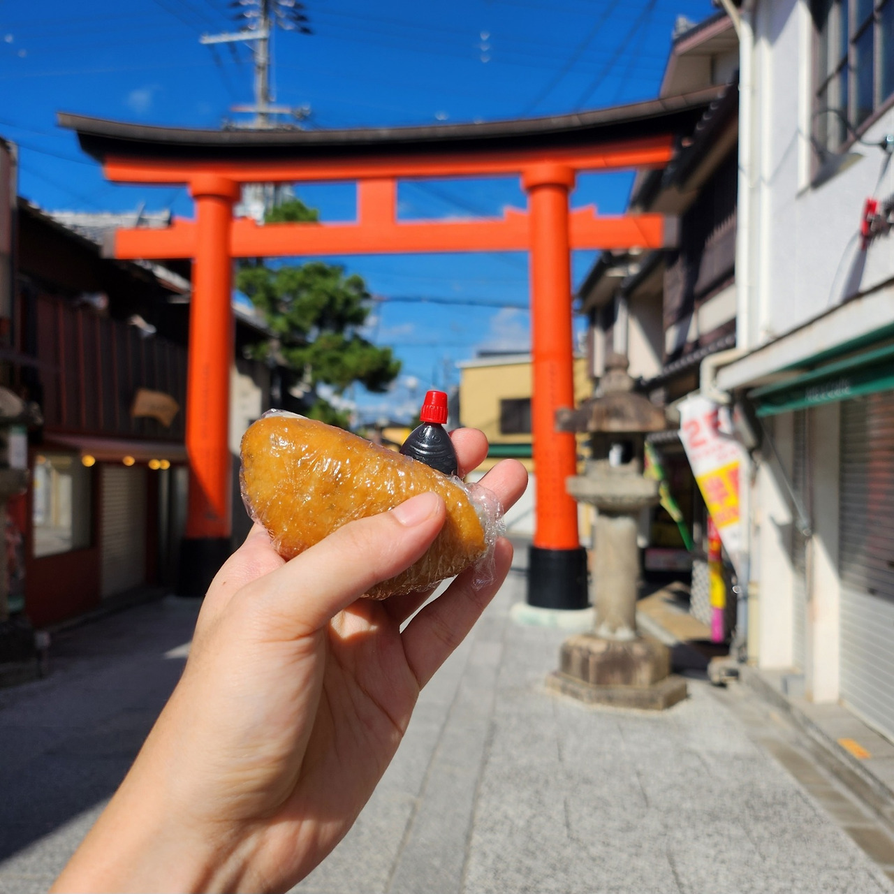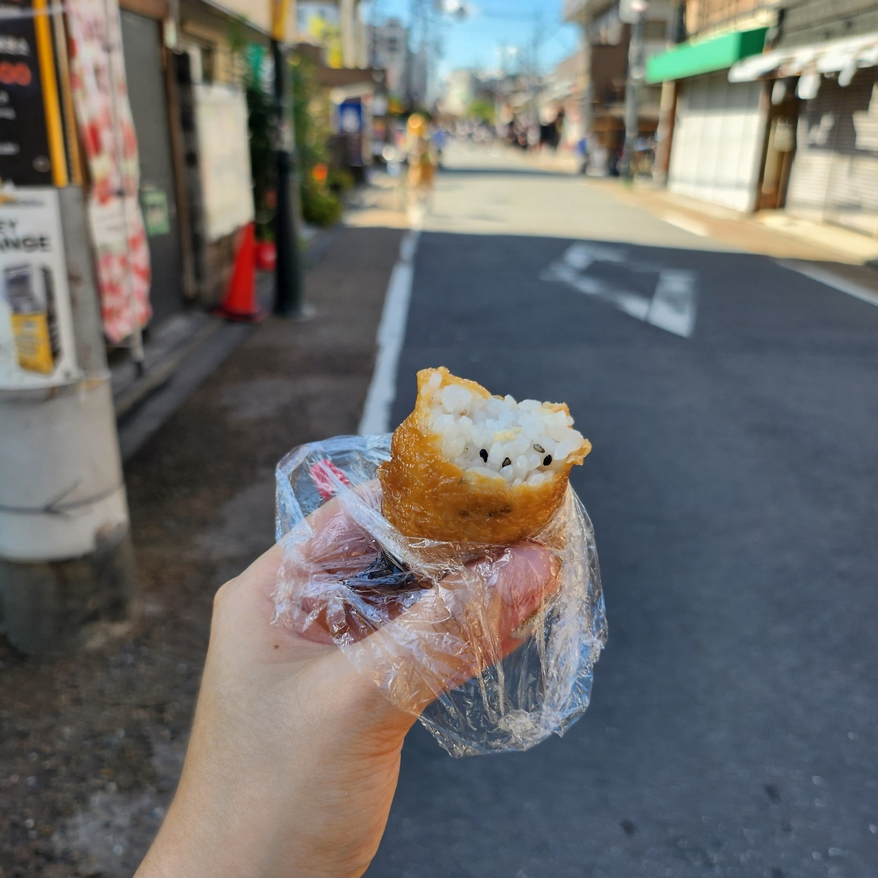 다음날, 6시에 일어나려 했지만 늦잠을 잤다. 무거운 몸과 눈꺼풀을 해결하지 못한 채, 산에 있는 신사로 향했다. 직진만 하다 보니 의도치 않게 산 전체를 한 바퀴 돌게 되었다. 모르는 산을 아는 산처럼 돌고 잘 내려가다가 길을 잃었다. 역을 찾아가던 중 길가에 파는 도시락과 간단히 먹을 수 있는 낱개 유부초밥을 발견했다. 길을 잃은 건 행운이었다. 그냥 지나칠 수 없었다.