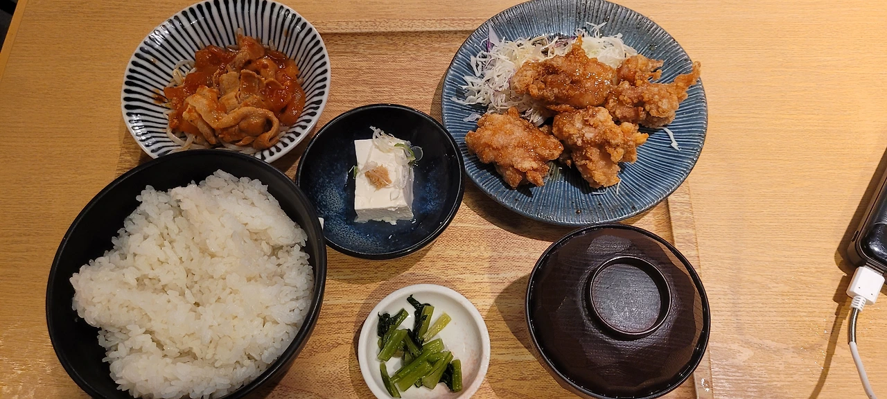 오늘의 정식 (가라아게, 토마토숙주볶음)이다