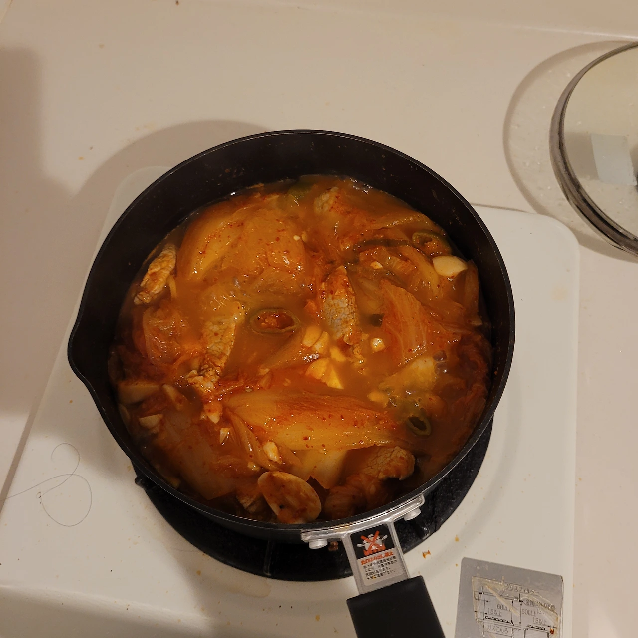 마늘의 맛이 몹시 고팠기에 마늘을 잔뜩 넣었다. 김치국물도 모조리 긁어서ㅋㅋ