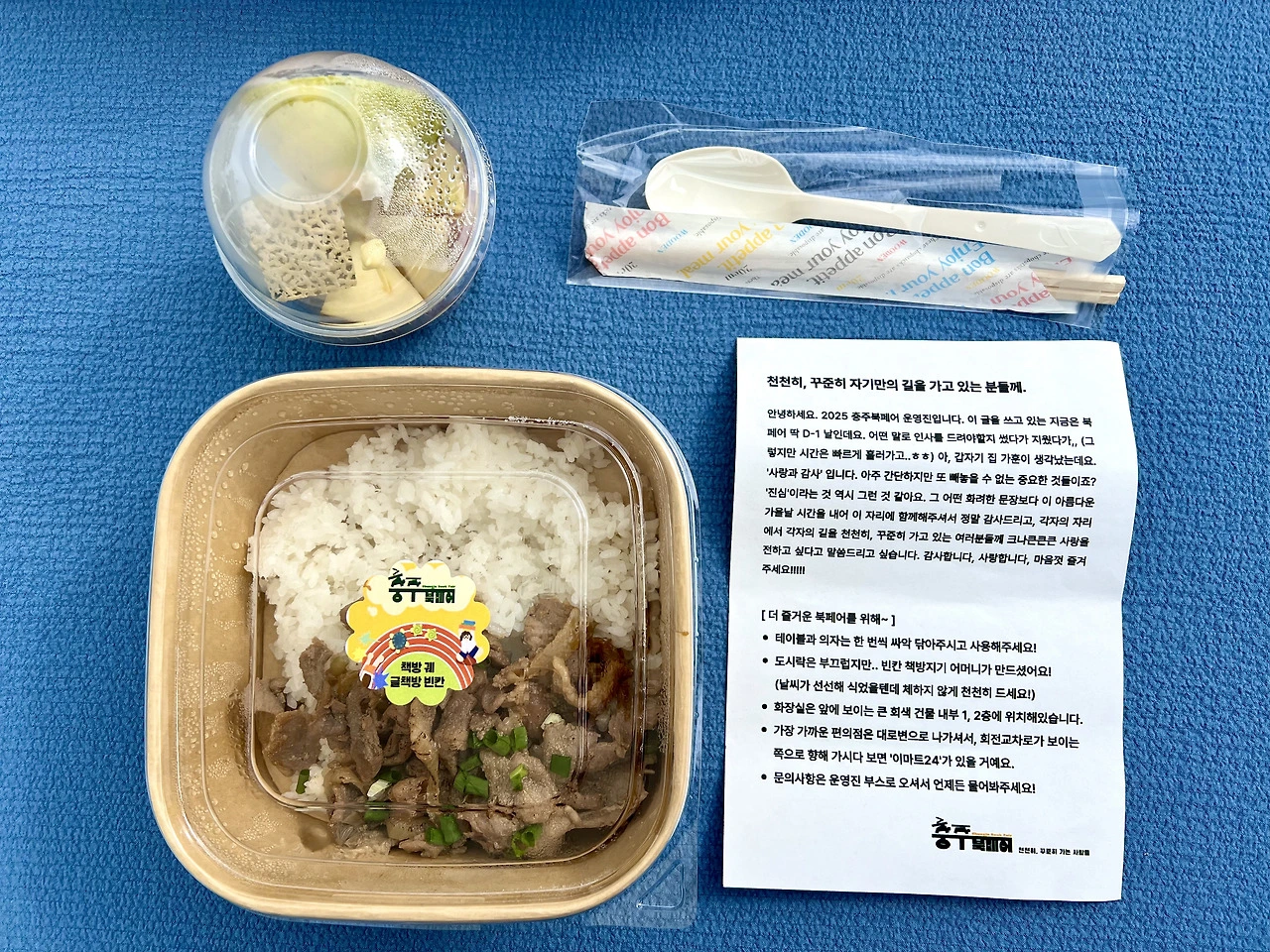 주최 측에서 준비해 준 도시락은 행사 마지막을 장식하는 보너스 같은 것이다. 북페어의 끝에는 늘 이런 작은 호의가 기억에 남는다. 수고했다는 마음으로 건네는 따뜻한 밥. ‘마감하고 천천히 먹어야지’ 하고 생각하며 도시락을 한쪽에 두었다. 늘 그렇듯, 끝날 때까지는 끝난 게 아니니까. 그렇게 마감 1분 전에 ‘구름’과 ‘벚꽃’ 두 권을 팔았다.