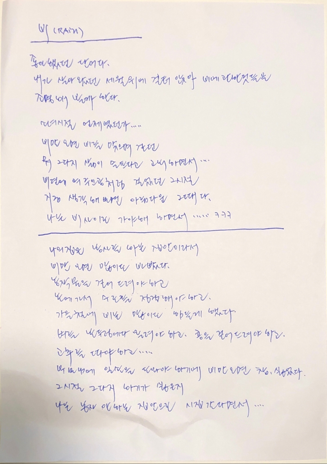 그래서 비를 좋아한 것 같다. 비로 나를 숨기려고... ㅋㅋㅋ