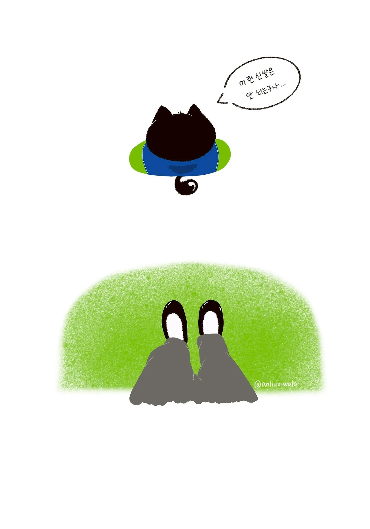 我今天穿的是白襪子配黑色皮便鞋。整雙鞋是全黑的,幾乎沒有鞋跟,遠看有點像黑色布鞋(台語叫「膠鞋」)。