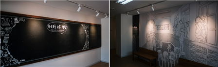 첫 번째, 마치 작은 옛 학교에 온 것 마냥 신발을 벗고 전시관에 들어하게 한다.