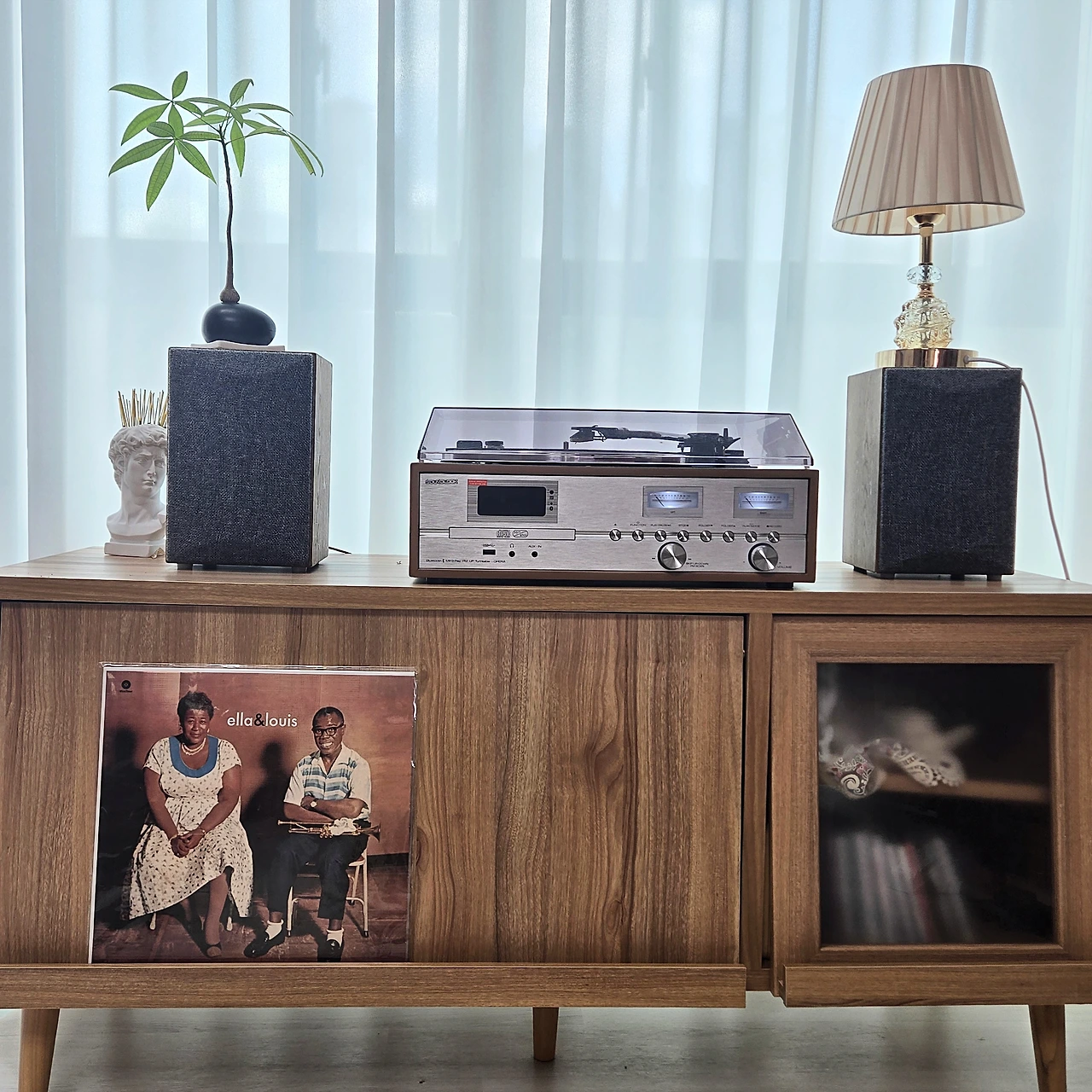 거실 한쪽에는 LP장이 있다.