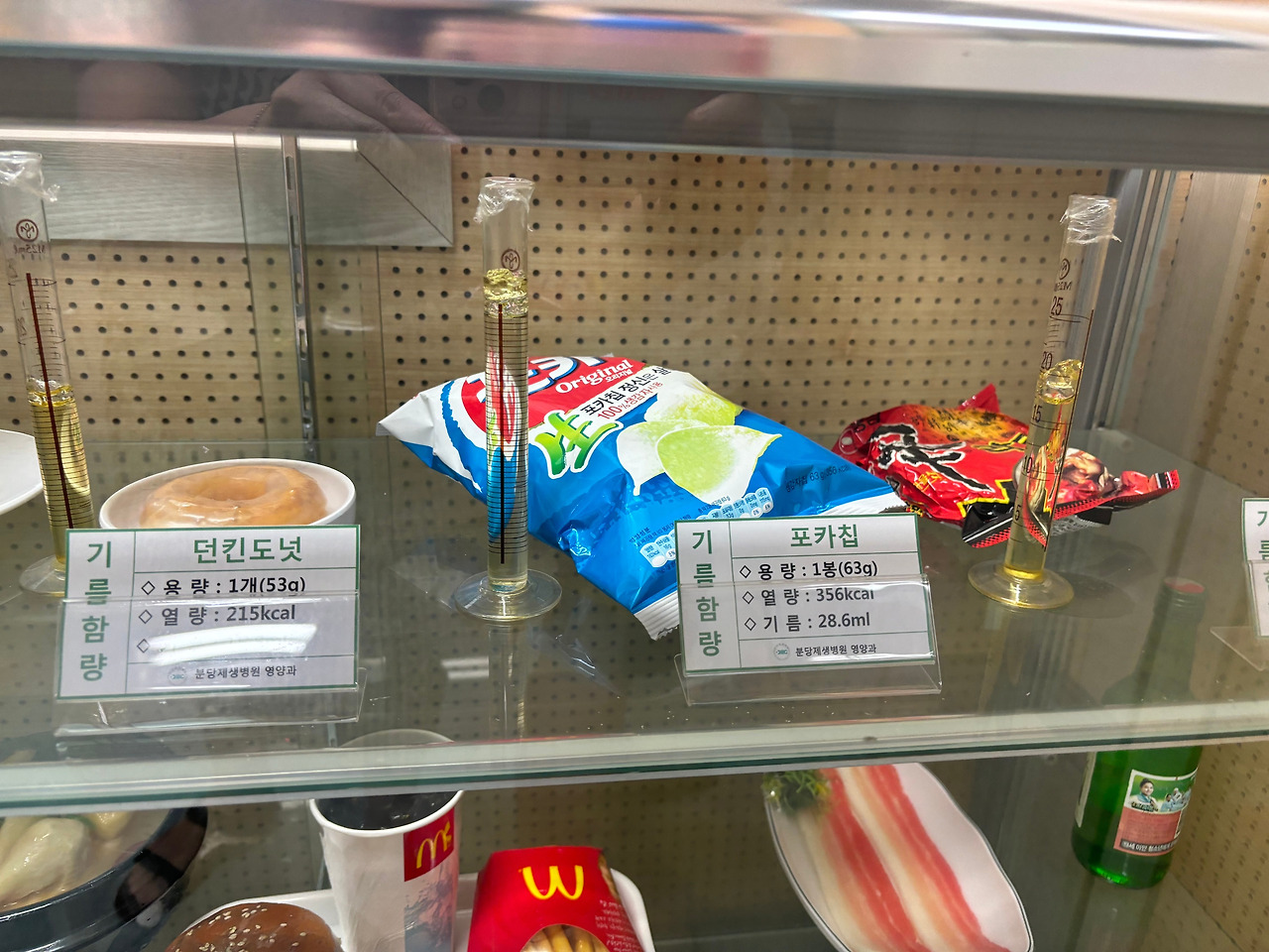 그 외 후군이 가장 좋아하는 밀키스 같은 음료수는 금지당했다. 친구들과 편의점에서 간식을 사 먹을 때도 되도록 살 덜 찌는 것을 선택하라는 말씀! 액상과당은 최악이므로 꼭 피하고 이온음료로 대체하면 좋고 소시지나 닭꼬치 같은 음식보다는 삼각김밥을 권해주셨다. 크림이나 잼이 묻어있는 빵은 그냥 처다도 보지 말라고 하셨다. 어른의 경우 안정적인 다이어트 권장 몸무게 변화는 한 달에 -2kg이라 한다. 수업이 끝나고 비치되어 있는 음식들의 모형을 사진으로 담아왔다. 아이의 건강을 위해 파이팅!