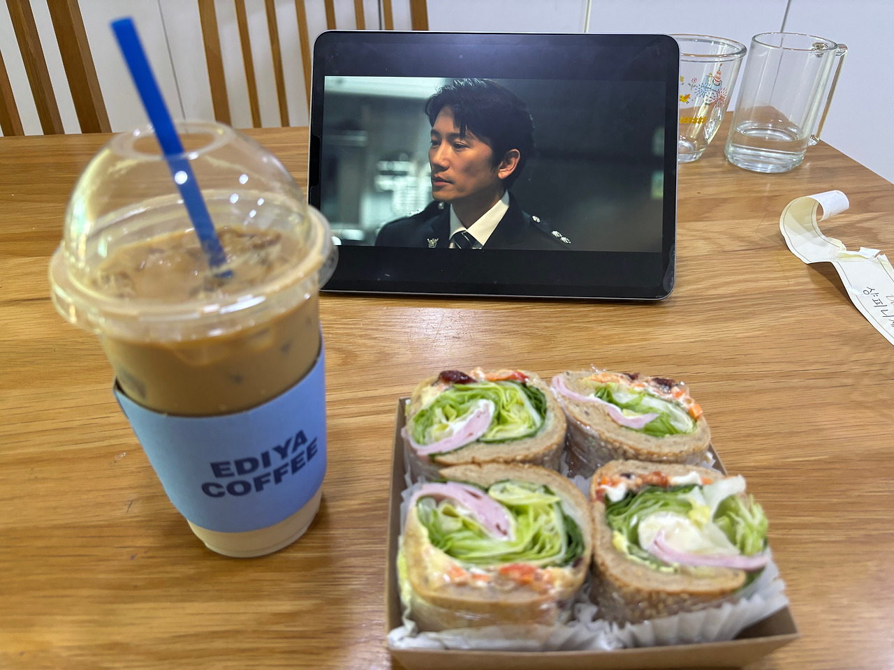 수면마취 후에 약간은 헤롱대는 정신을 맑게 하고 싶다. 전부 다 핑계고 그냥 아이스라테가 너무 마시고 싶다. 아이스라테와 뭐가 어울릴까? 샌드위치. 샌드위치와 라테로 브런치를 하기로 하고 동네 빵집에 갔다.