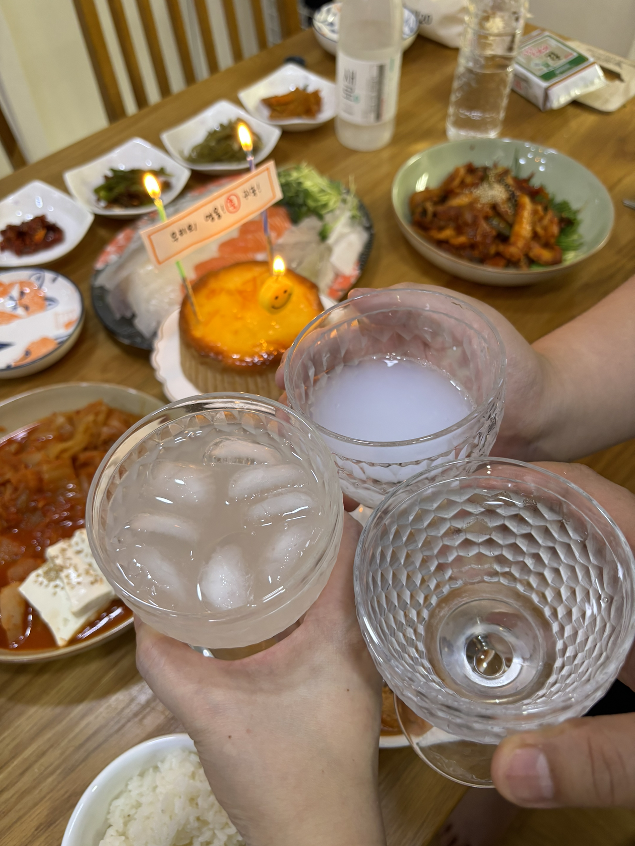 한국음식 그리웠을 테니 칼칼하고 매콤한 음식들로 준비해 보자. 날씨가 구리구리 하니 고니가 듬뿍 들어간 시원한 알탕과 포기김치를 그대로 사용해서 푹신 김치찜, 매콤 달콤한 오징어볶음 메인요리 준비 끝이다. 밑반찬들을 몇 개 더 사고 완전 범죄를 위해 집에 후다닥 들어갔다. 남편이 오기 전까지는 1시간 여가 남았다. 일단 알탕을 끓여서 국물이 우러나오게 한 다음 식탁에 식기류를 세팅하고 시원하게 마시라고 냉동실로 소주를 옮겼다. 후군의 과외시간 픽업이 6시니까 그럭저럭 남편의 버스 드랍시간과 맞는다. 모든 걸 계산한 후 남편을 데리러 버스 정류장으로 갔다. 남편을 만나기 전에는 나만 혼자 힘들게 놔둔 것 같아 원망스럽고 얄미웠는데 식구는 식구인가 보다. 멀리서 손 흔들며 기다리는데 너무 반가워서 미운 마음이 눈 녹듯 사라졌다.