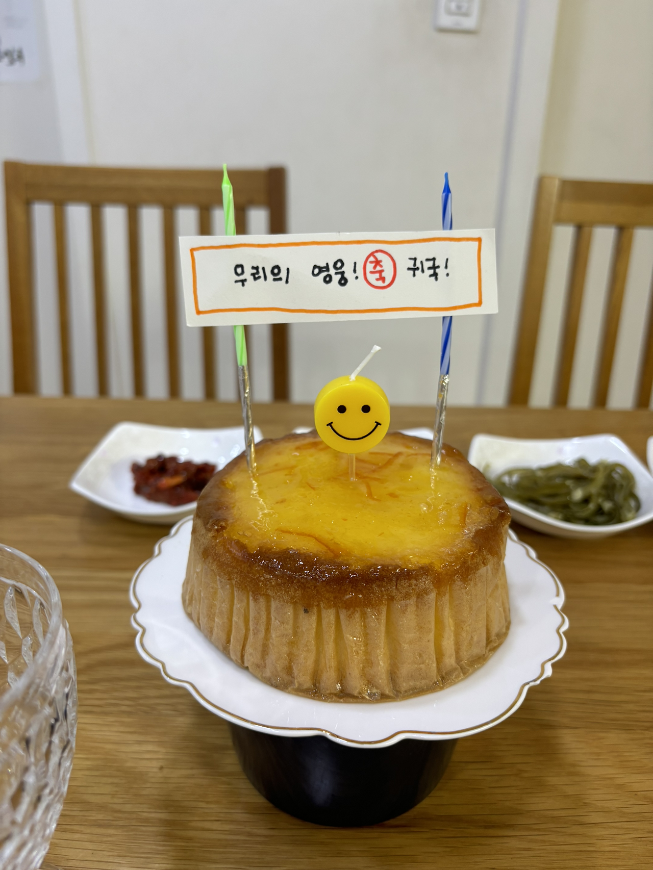 후군 방에서 종이 잘라서 급하게 만든 미니 플래카드가 생각보다 귀염뽀짝이라 스스로 만족스러웠다. 내용을 뭘로 쓸까? 돌아오길 잘했어. 축 귀국. 가족합체... 흠... 마침 임영웅 음악 듣고 있어서 그래 영웅!!!