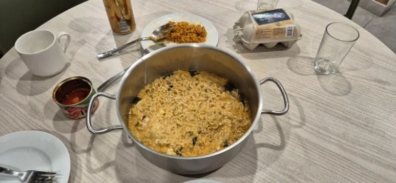 그리고 저녁은 목포에서 오신 친절하고 잘생긴 아저씨가 끓어주신 유럽산 한국 너구리 라면과 신라면에 계란을 넣어 정말 맛있게 먹었다.