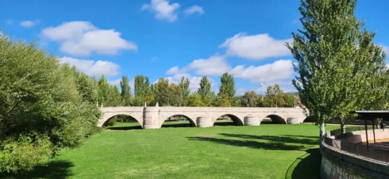 까미노 데 산티아고에서 만나는 여러 다리 중에서 독특하게 휘어진 모양과 20개의 아치로 이루어져 있다고 한다. 또 우리나라 다리들과 많이 비교된다.