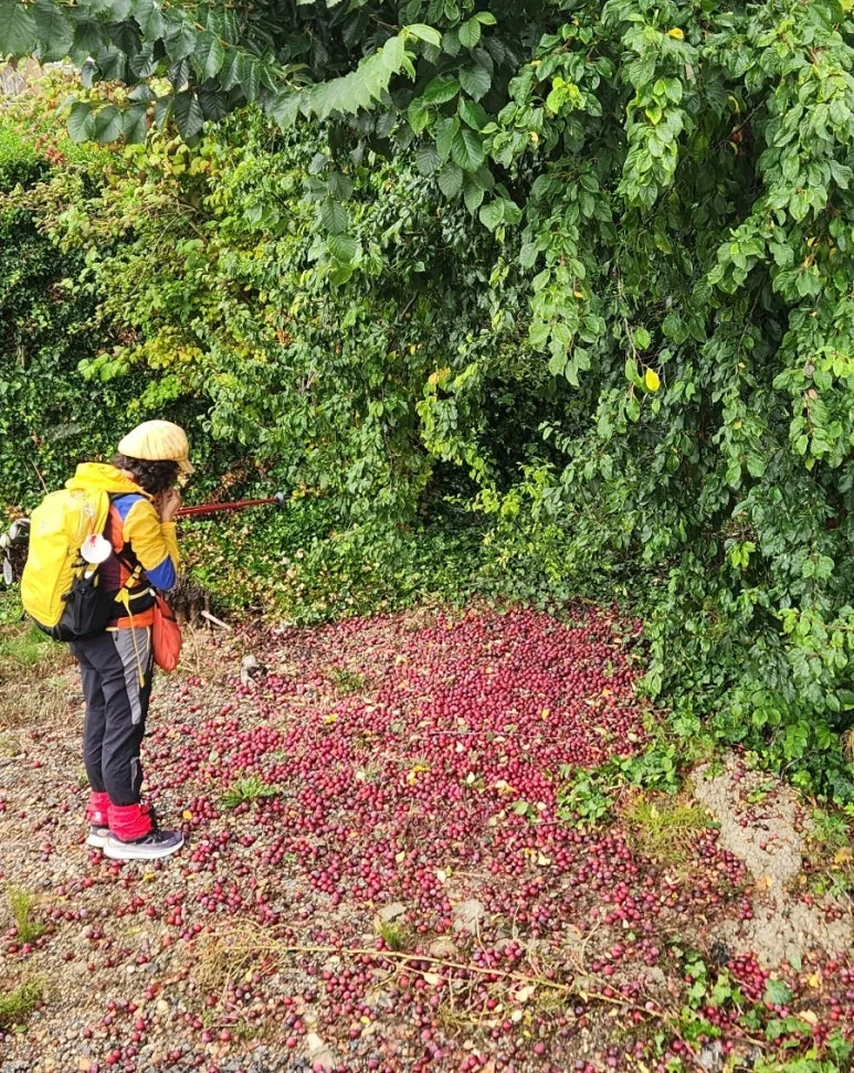 순례길을 걸으며 길가에서 포도, 무화과, 블루베리, 산딸기를 따먹고 오늘은 호두와 자두를 주워 먹었다.