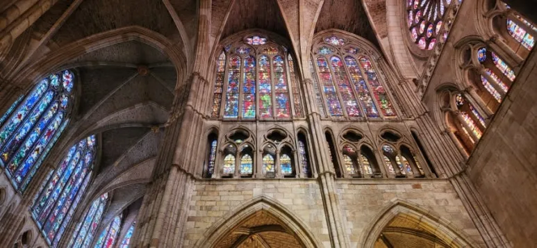 중세 건축된 대부분의 성당은 어두운데 레온 성당은 밝고 화려한 수백 개의 스테인드글라스 그림이 성당을 아름답게 밝힌다.
