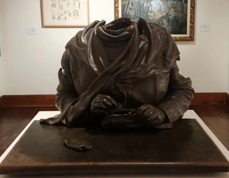 홀리오 로페스 에르난데스의 은퇴한 여성이란 조각을 보며 한참을 머물렸다. 낡은 지갑에서 동전을 세고 있다.