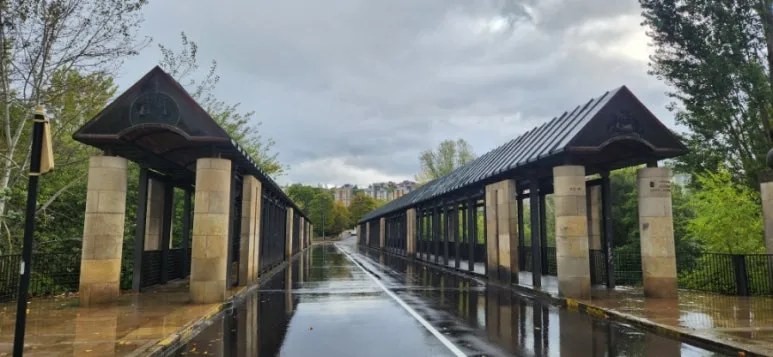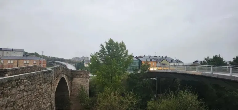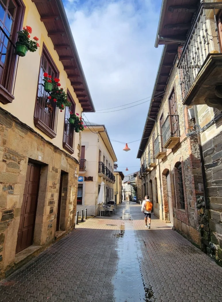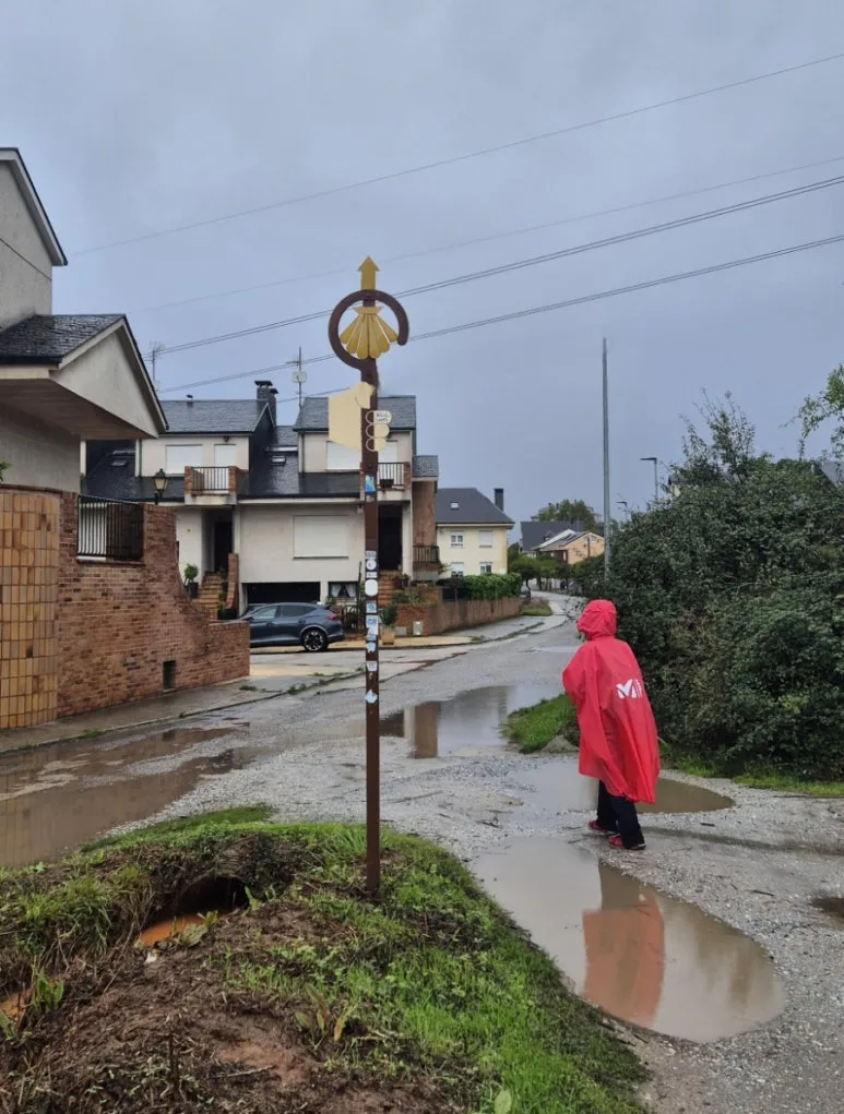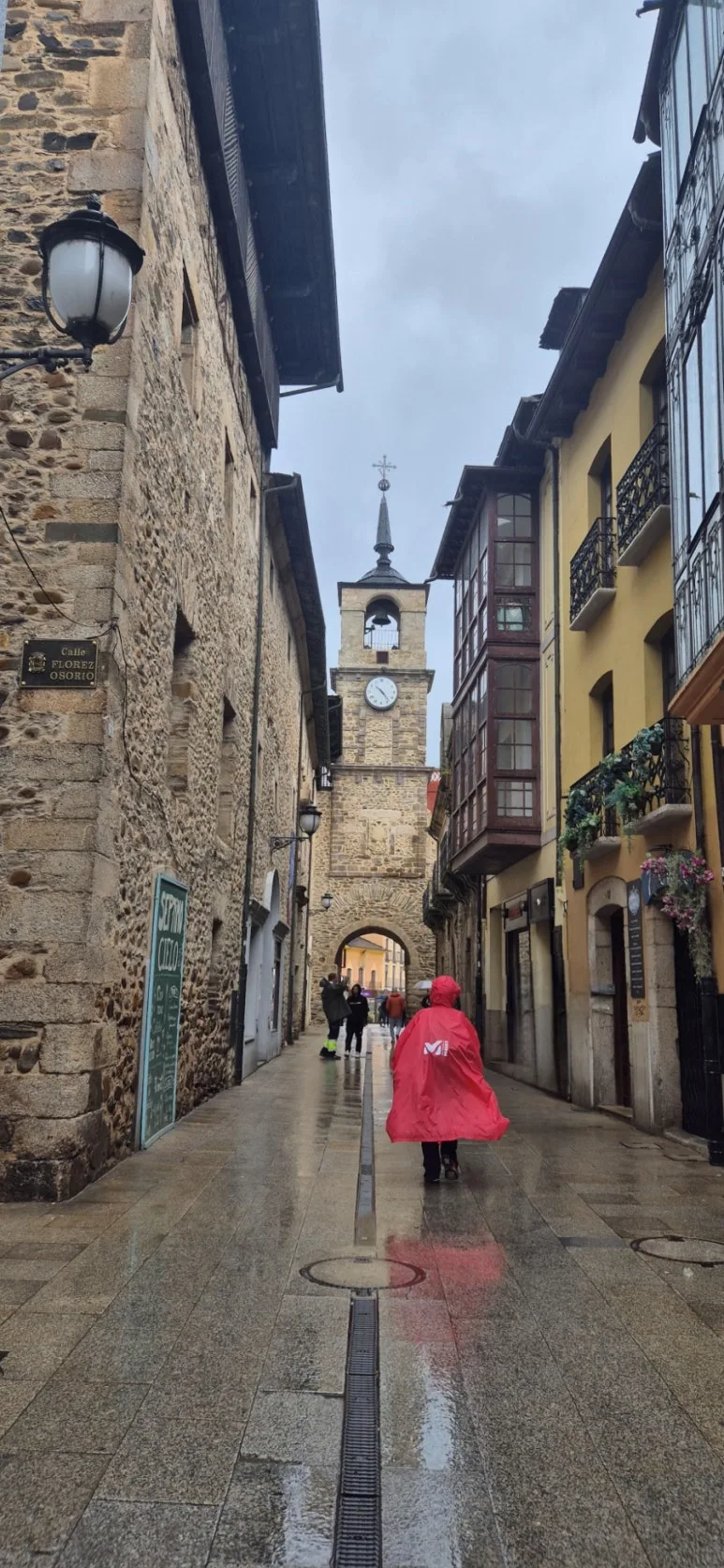 시계가 있는 성문을 통과하자 현대식 도시 폰데라다가 펼쳐진다. 산티아고 순례길 표지에 빨간 페인트로 X가 그려져 있었는데 장난인 줄 알고 조개 표식을 계속 따라갔다. 출입 금지 줄이 있는데도 비바람이 거칠어져 마음이 급해 계속 걸었다.