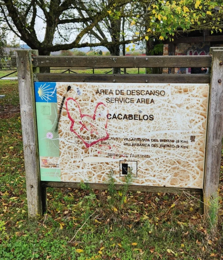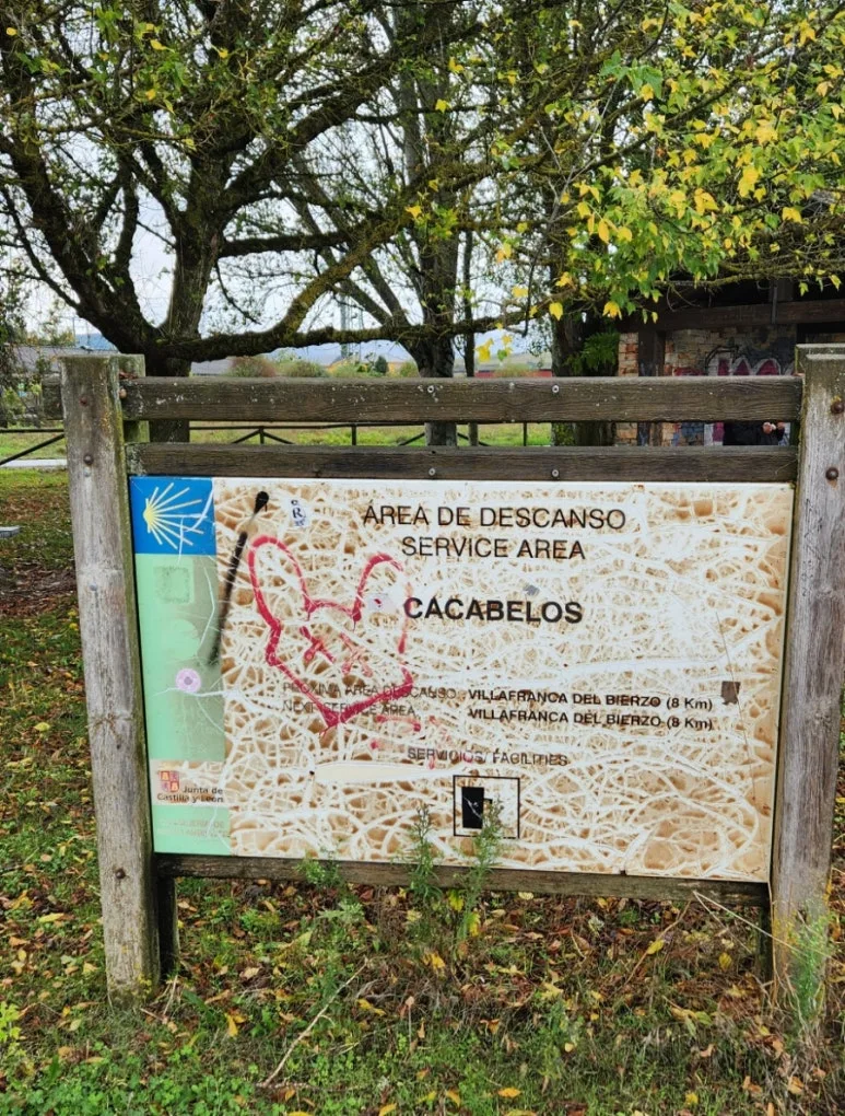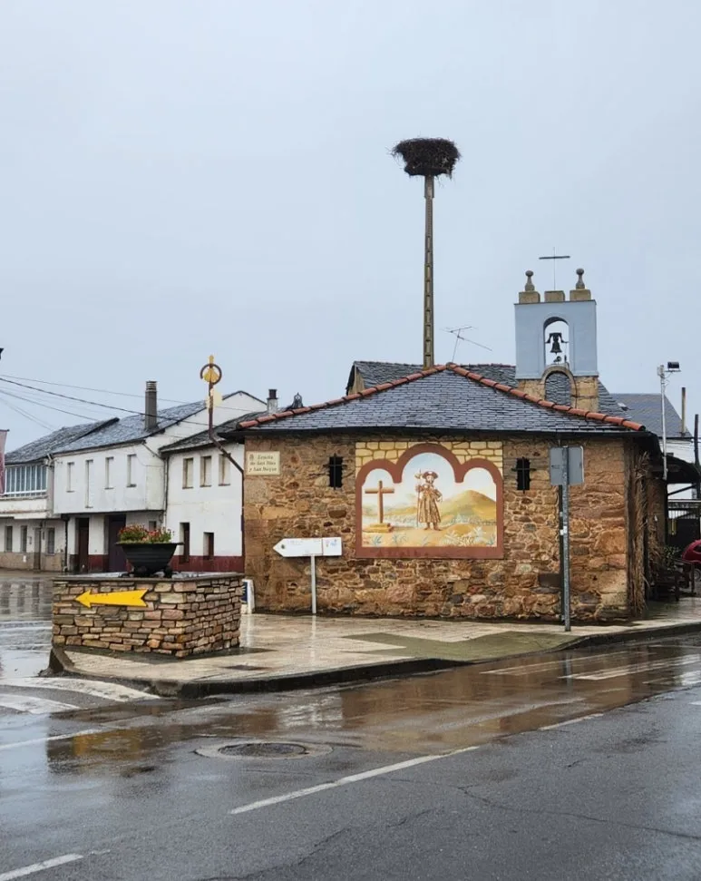 제일 끝이 보이지 않던 긴 오르막을 오르자 저만큼 작은 마을 카카벨로스가 보였다. 거센 비가 멈추며 생쥐 같은 순례자들을 수고했다며 맞아주었다.