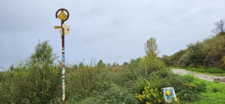 오늘도 노란색 화살표와 조개껍질은 나의 길 안내자가 되어준다. 어제처럼 물 고인 웅덩이도 화살표로 보이고 노란색은 보고 또 보고---