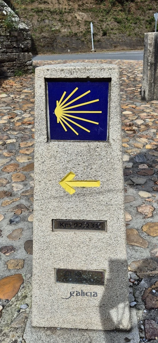 생장에서부터 걸어온 순례자들은 박수를 치고 환호하며 이 표지석에서 사진을 찍는다. 그리고 서로가 서로를 찍어주며 수고했다고 칭찬을 한다. 하지만 사리아부터 시작한 사람들은 쳐다보지도 않고 휙 지나쳐 버린다.