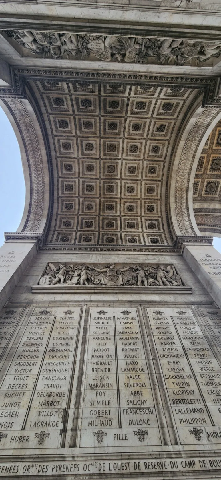 프랑스혁명과 나폴레옹 전쟁에서 죽은 전사자들을 기리기 위하여 세워졌으며, 개선문 아래에는 당시 전쟁에서 프랑스가 거둔 모든 승전보들과 지휘관들의 이름이 새겨져 있다.