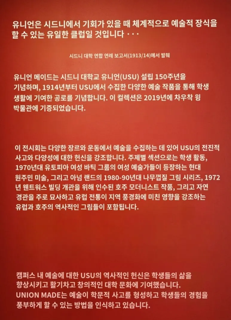 건물 외벽에는 피카소, 반 고흐, 모네 같은 세계적 거장들의 이름이 큼지막하게 새겨져 있었다. 그 이름들이 이곳의 역사를 대변하는 듯했다. 하지만 미술관 안으로 들어서면, 그 이름들 너머에 더 깊은 호주의 숨결이 깃들어 있었다. 전시는 놀랍도록 다양했다.