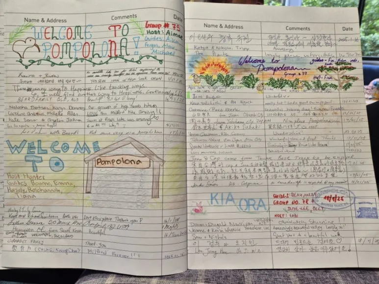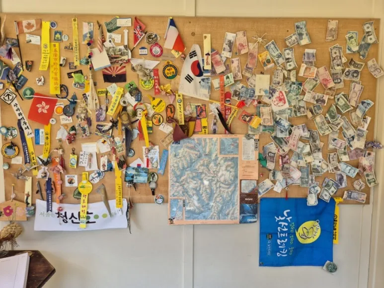 로비 옆 작은방에 밀퍼드 박물관이 있다. 50년간의 기록이 보관되어 있었다. 벽에 태극기와 한국의 돈, 깃발들이 제일 많다. 스페인 산티아고 순례길처럼 우리나라 사람들은 적극적이고 약간 극성이다. 그런데 의외로 방명록에는 한국 사람들이 별로 없었다. 나는 한글과 영어로 이렇게 썼다.