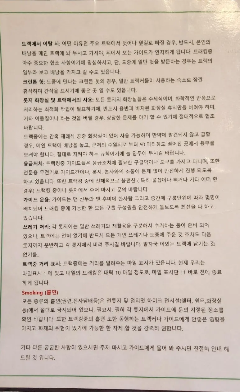 선착장에 내려 이 멋진 자연을 보호하기 위해 폴대와 신발을 정성껏 소독해야 했다. 제주 곶자왈을 떠올리게 하는 숲길을 조금 걸어 글레이즈 로지에 도착했다. 입구부터 내일의 여정을 기다리게 했다.