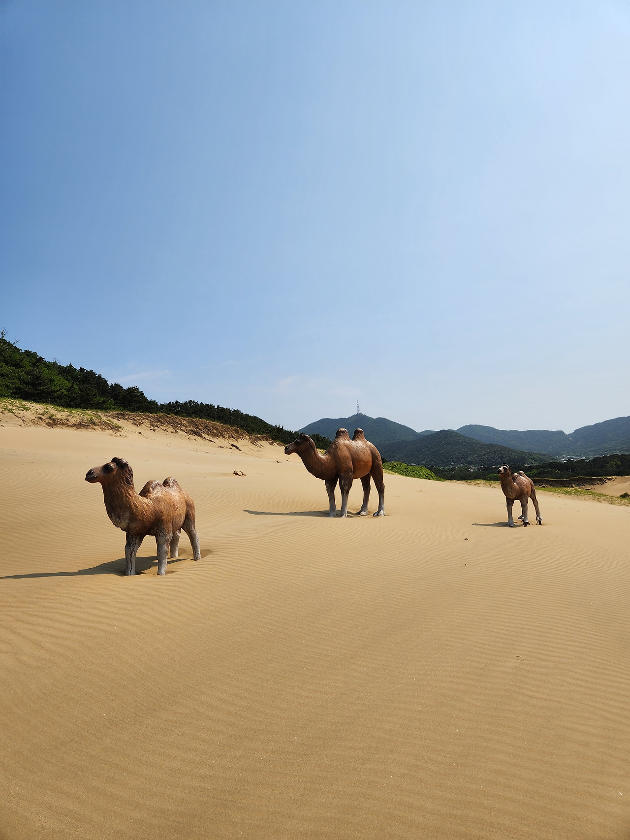 모래언덕 중간에 낙타 조형물이 세워져 한국의 사하라 사막이라 불리기도 한다. 밀물에 밀려온 옥죽포 해변의 모래가 썰물과 햇볕에 바짝 마른 후 바람을 타고 산을 오르며 날아와서 이곳에 사막 능선이 만들어졌다고 한다.