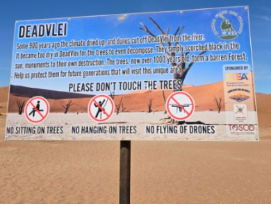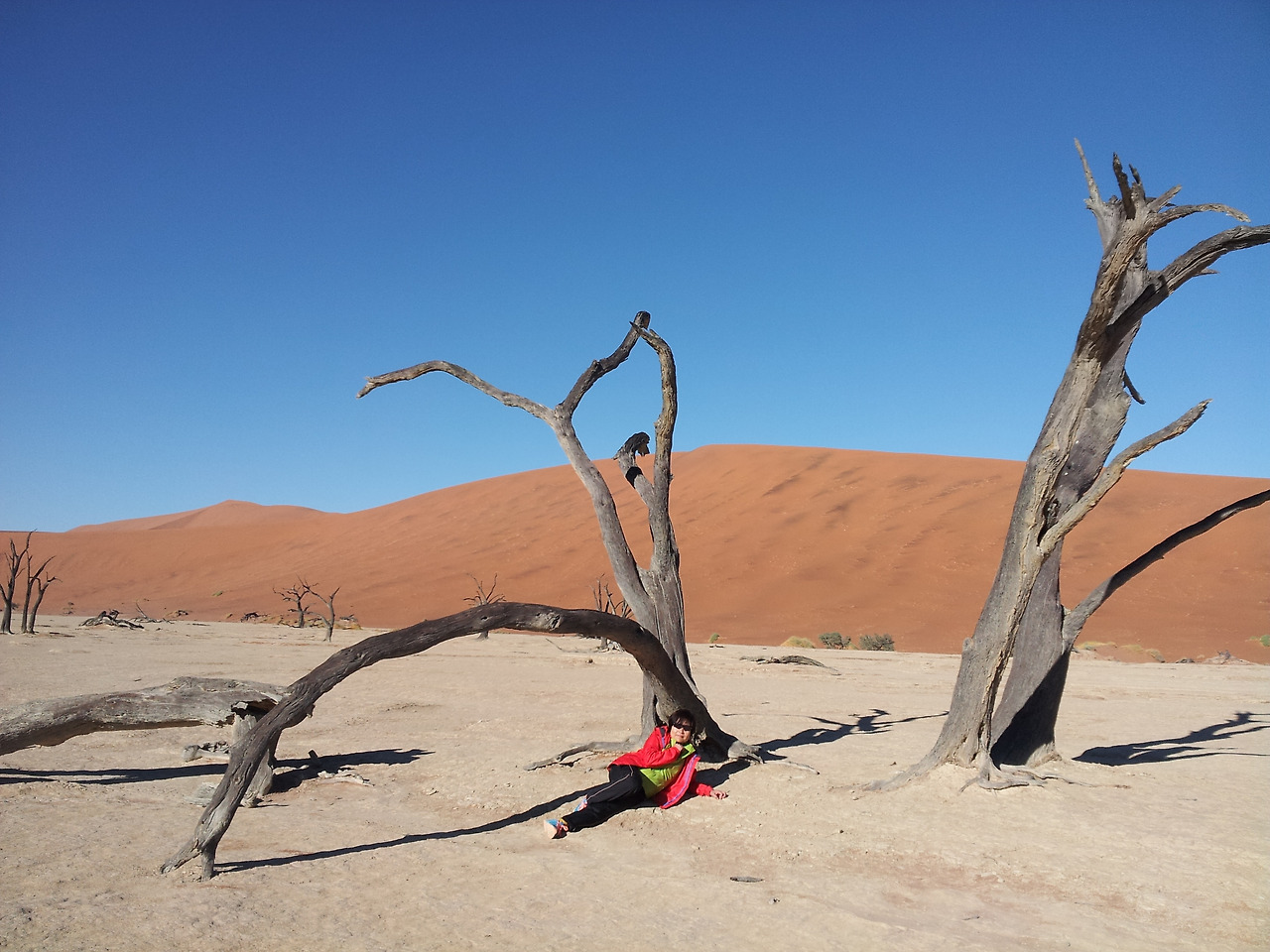'파란 하늘과 붉은 사막, 하얗게 변해 갈라지는 땅, 검게 변하여 화석이 되어가는 아카시아 나무들그리고 어울림'
