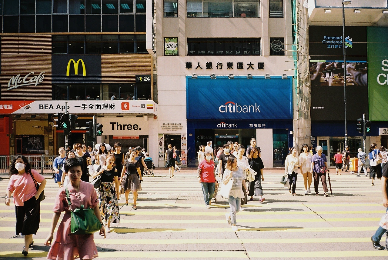 홍콩을 다녀온 사람이라던 귓가에 맴도는 그 소리. 횡단보도 앞 신호등. 약속된 대로 멈춰있다가 뚜뚜뚜뚜- 신호등 소리에 맞춰 일제히 움직이는 모습이 통일되어 있는 것 같으면서도, 걷는 방향과 모습은 각기 다르다. 동서남북도 모자라 대각선 방향으로 뛰어가는 사람, 수레를 끄는 사람, 더위에 지쳐 터벅이는 사람, 총총 걷는 사람, 담배피며 걷는 사람, 바닥만 보며 걷는 사람, 주변 사람을 흘기며 걷는 사람, 그리고 호기심에 카메라를 들이대고 보는 사람 like me.