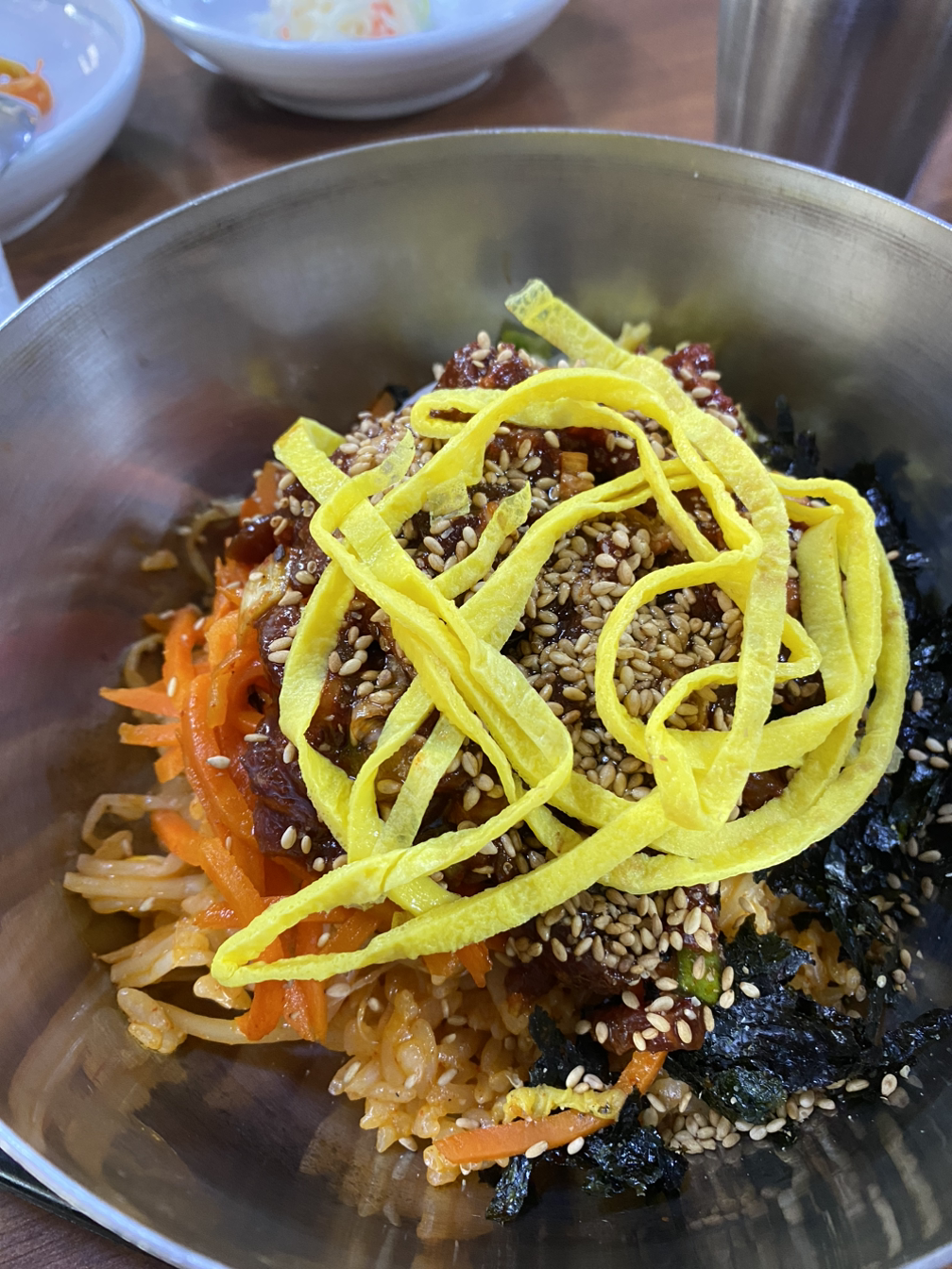 그래서 그런지 어제 황등에서 먹은 육회비빔밥이 생각난다. 사실 비벼져서 나오는 비빔밥 스톼일은 전주비빔밥과 닮아있다. 언제나 느끼는 거지만 내 개인적으로 전라도에 오면 굳이 비빔밥류를 드시는 걸 비추한다. 이유? 항시 내겐 짜다. 하지만 지금은 배가 너무 고파서 이도 엄청 맛있게 먹을 듯하다.