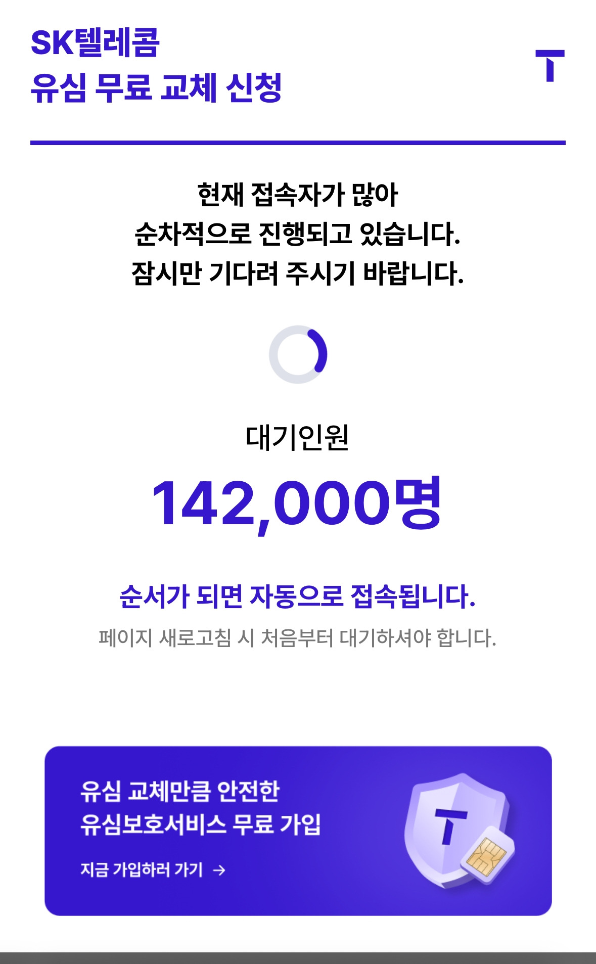 급한 대로 유심 교체 대신 무료로 제공되는 '유심보호 서비스' 라도 가입하려 했지만, 이 또한 대기 시간이 심각했다.