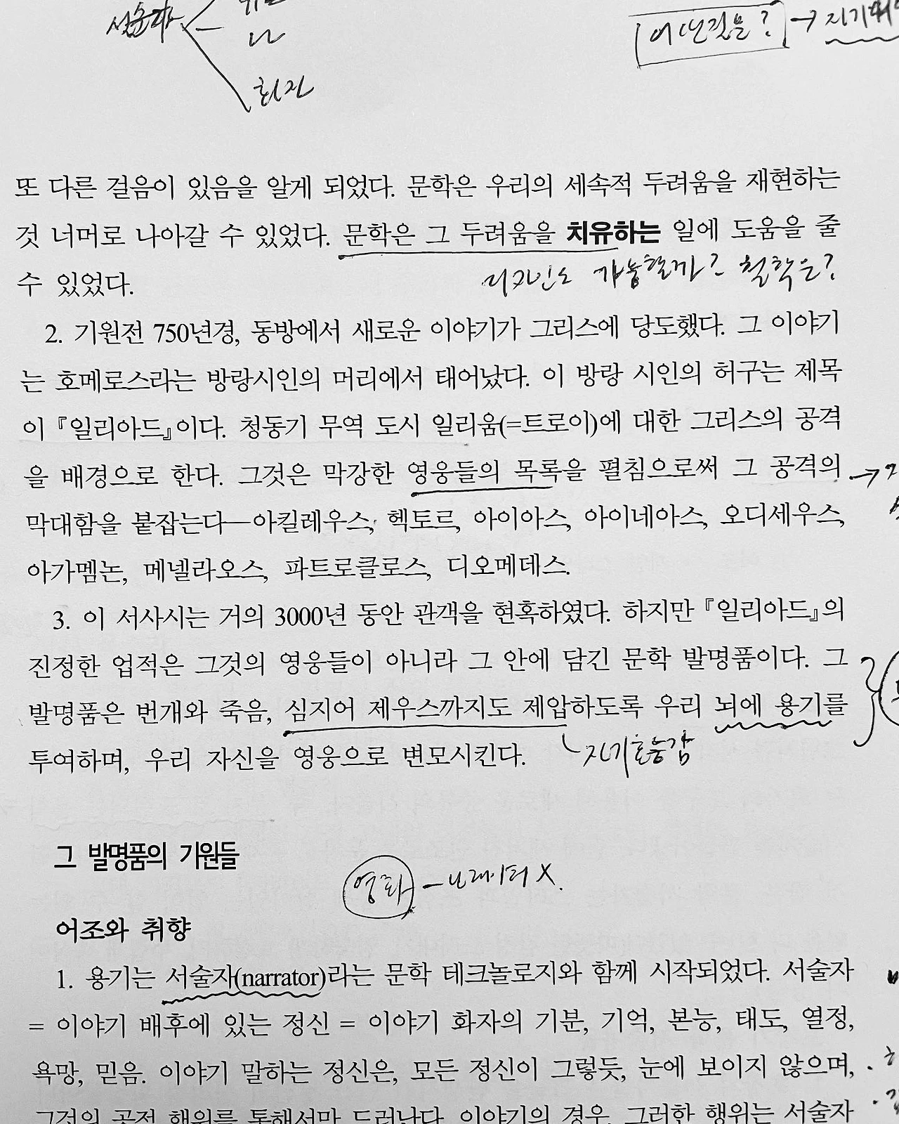 호메로스는 전쟁 서사를 통해 사람들에게 용기를 준다. '할 수 있다' '살 수 있다'는 용기. 어제 우리는 이 부분을 함께 읽으며 문학과 용기를 둘러싼 생각을 나누었다.