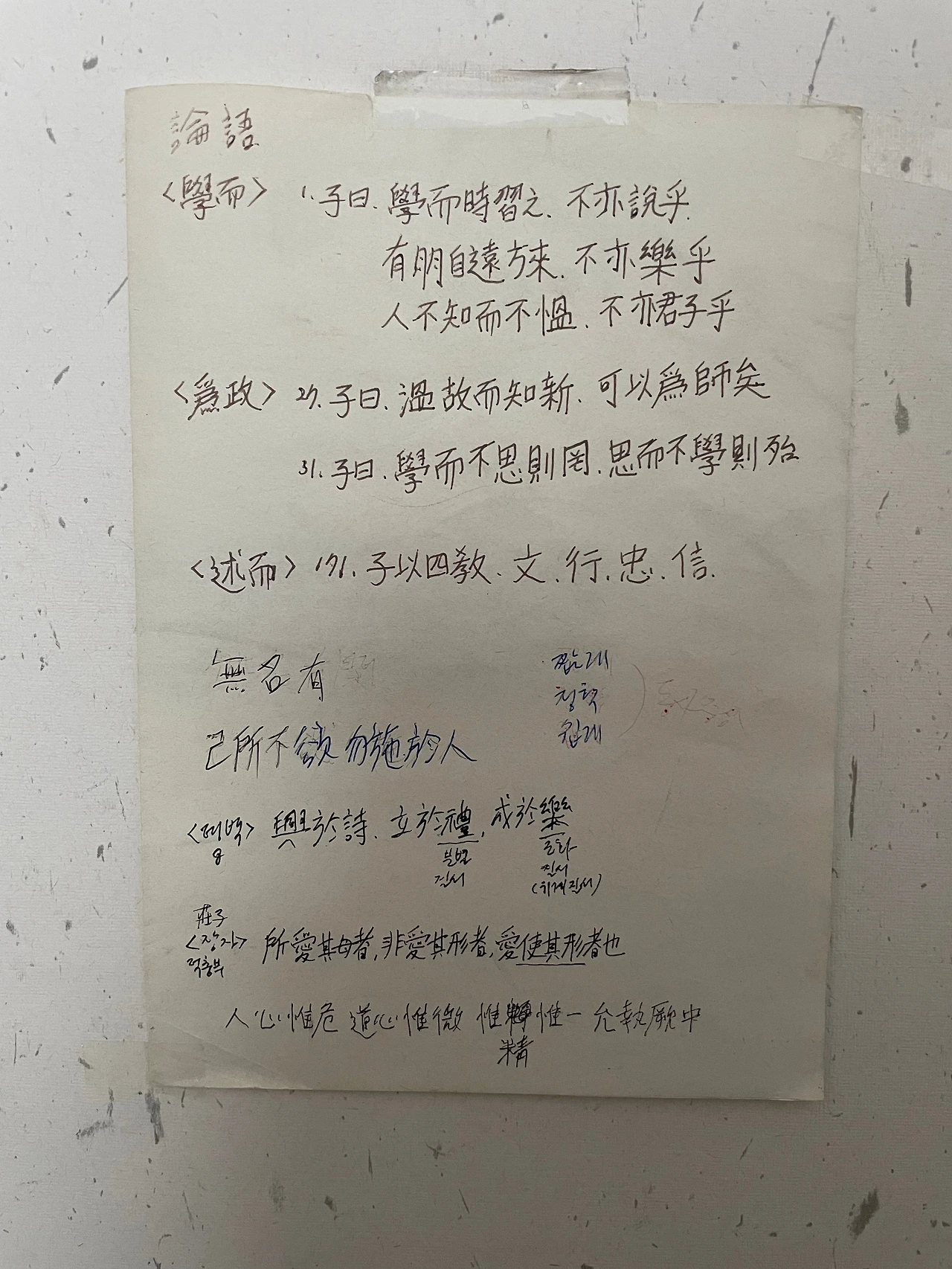 아무튼 저는 50대가 되었습니다. 공자님이 말한 50대 지천명에 동의한다면, 2,000년 동안 공자님 말씀을 정리한 《논어》를 말하지 않을 수 없습니다. 제 책상에 항상 붙어 있는 글귀는 논어의 첫 구절입니다.