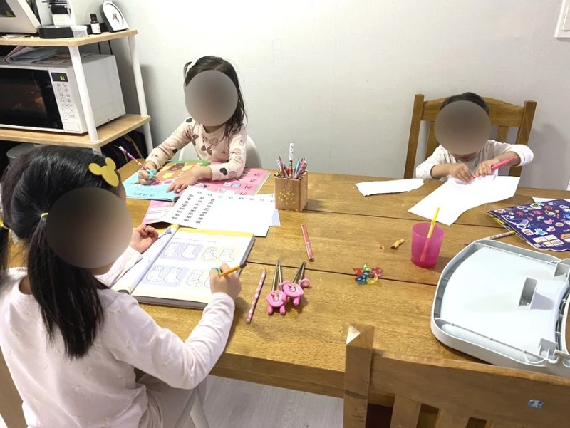 사실 세 아이를 돌보면서 집에서 공부까지 가르치기란 쉽지 않습니다. 먹이고 입히고 재우는 것만 해도 하루가 금방입니다. 더구나 저녁시간에 막둥이는 막둥이대로 놀아주고 안아주고 자기에게 관심을 가져주길 원합니다. 그리고 첫째와 둘째는 자기 워크북 활동을 봐달라고 서로 먹잇감을 부르는 아기새들처럼 엄마와 아빠를 그렇게 불러댑니다. 중요한 건 저녁식사 준비도 해야 합니다. 진짜 솔직히 어른 세명은 필요한 시간이기도 합니다. 하지만 저희 집에 어른은 저와 남편뿐입니다. 그래서 둘이서 세 명분의 역할을 하며 꾸준히 이 시간들을 견뎌내고 있답니다.