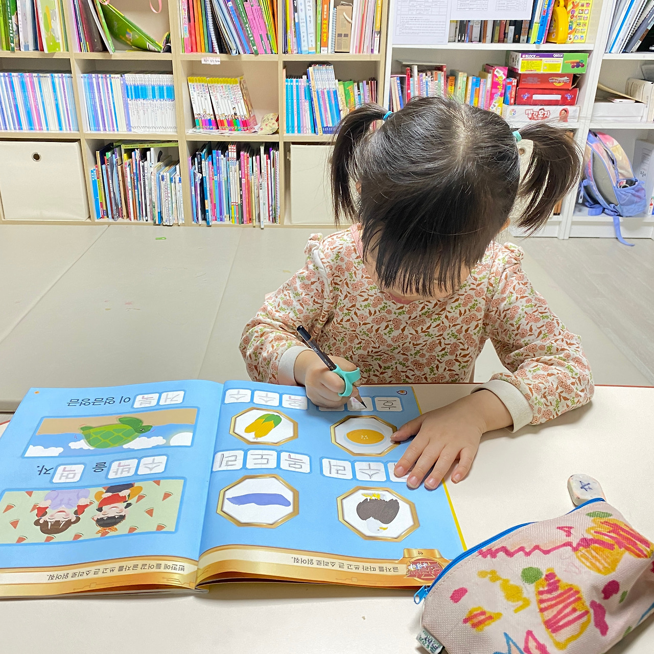 이번 주 월요일 평소와 같이 저녁을 먹기 전 한글 공부를 함께 했어요. 그런데 공부를 마치고 책 정리를 하면서 아이는 함박웃음을 지으며