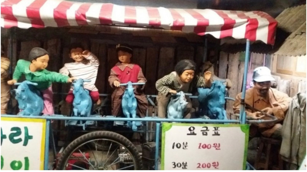 놀이공원이 가기가 요즘처럼 쉅지 않건 그 시절 ‘리어카 말타기’는 흥미있는 놀이기구였다. 리어카를 개조해서 말 모양 인형 4개 정도를 올려놓은 놀이기구였다. 한 번에 몇 백 원 정도였던 것 같다. 외가집 앞 그 언던길에서 탔던 그 리어카 말의 재미있던 순간이 아직도 생생하다.