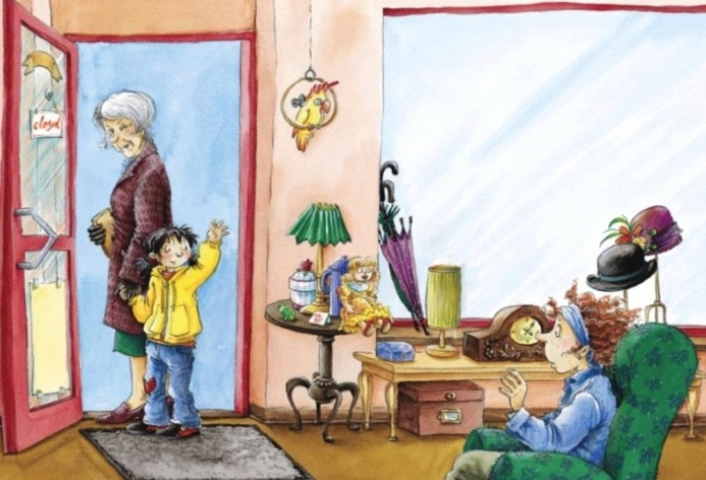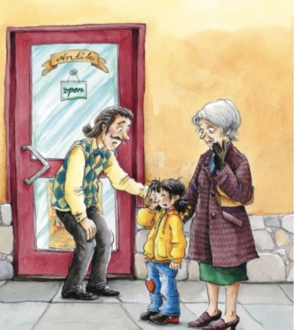 파울리네는 새엄마를 사기 위해 약국, 신발가게, 슈퍼마켓, 미용실, 시장 등에 갔으나 새엄마를 팔지는 않았다. 그러다가 슈네크 아저씨네 골동품 가게로 갔다.