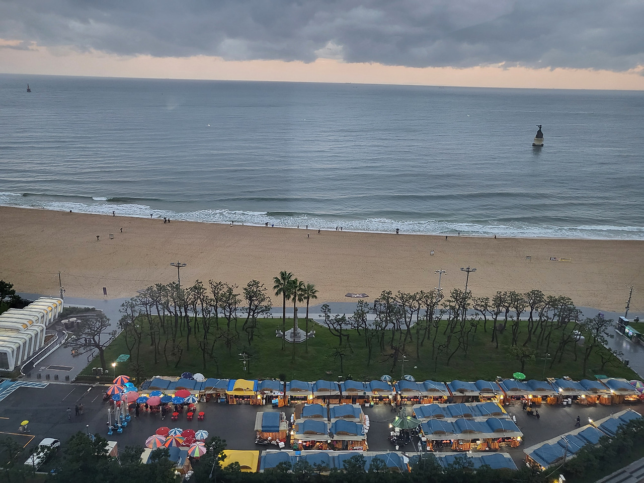 영화를 다 보고는 잠시 숙소를 들렀다. 숙소 창문으로 해운대 포장마차촌이 바로 내려다 보였다. 이제 곧 포장마차촌이 철거된다고 하는데, 이 역시 아쉬운 부분이다. 민락수변공원과 포장마차촌 모두 이제 더 이상 만날 수 없다. 그냥 개인적으로 이런 공간들은 유지하며 잘 관리·운영하는 쪽으로 가는 편이 낫지 않을까싶다. 서울의 한강공원은 치맥 , 한강라면의 성지로 외국인들의 서울 투어 필수 코스가 됐다. 또 여수는 시 차원에서 낭만포차거리를 관리하면서, 많은 관광객들을 유치하고 있지 않나.