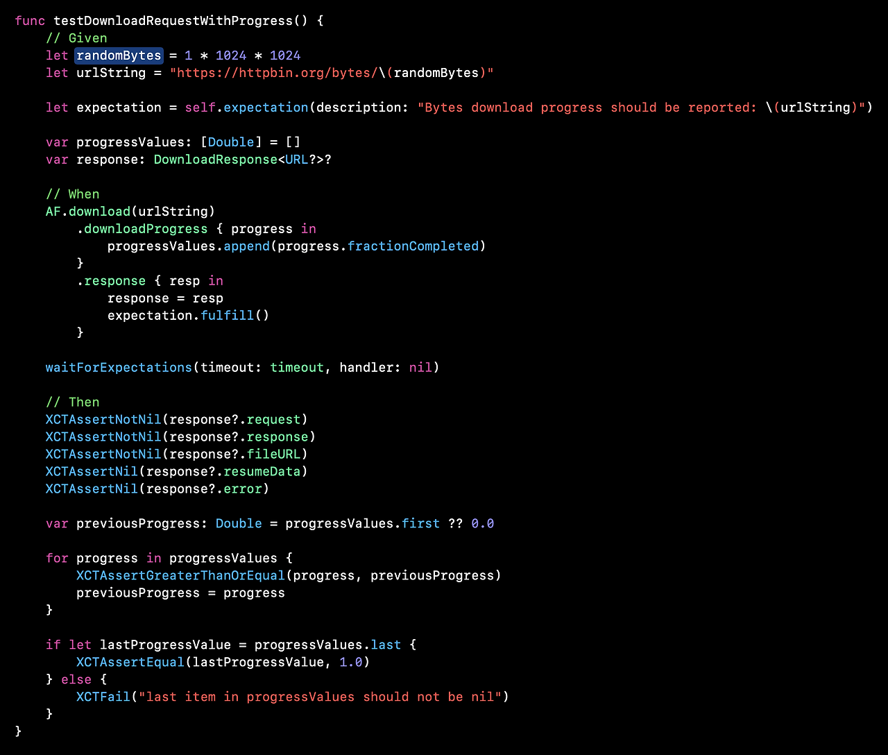 Alamofire 테스트 코드는 정말 깔끔하고 이해하기 쉽게 작성되어있다.
