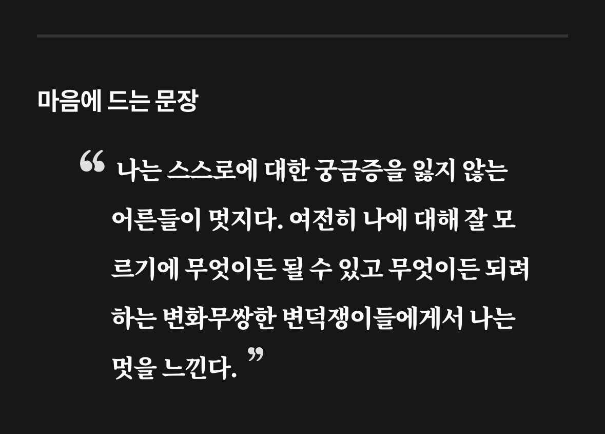 그리고 '어떤 사람이 되고 싶은가?'에 대한 질문을 놓지 말고 살았으면 좋겠어.