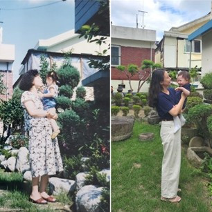 어릴 적 사진과 똑같은 구도로 찍고 싶은 나는 고집을 부린다.