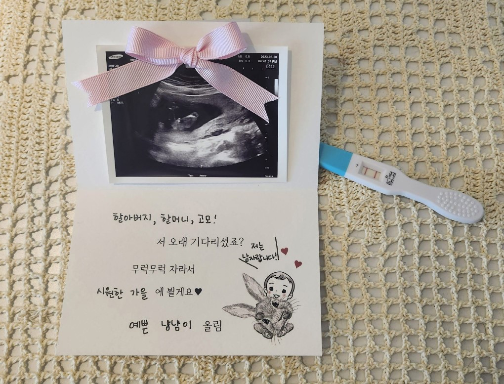 예비 할아버지, 할머니, 고모를 위해 만든 임밍아웃 카드. "저는 남자랍니다!"