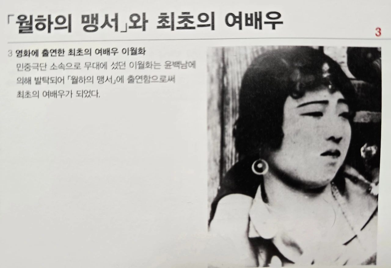 "여러분 당시 우리나라 조선 구한말 시대적인 배경으로 따지고 보면 여배우의 이미지가 현재와는 많이 달랐어요. 그래서 사진 속 여자배우인 이월화 배우가 활동을 하면서 같은 이미지의 여자배우들이 많은 활약을 했었답니다."